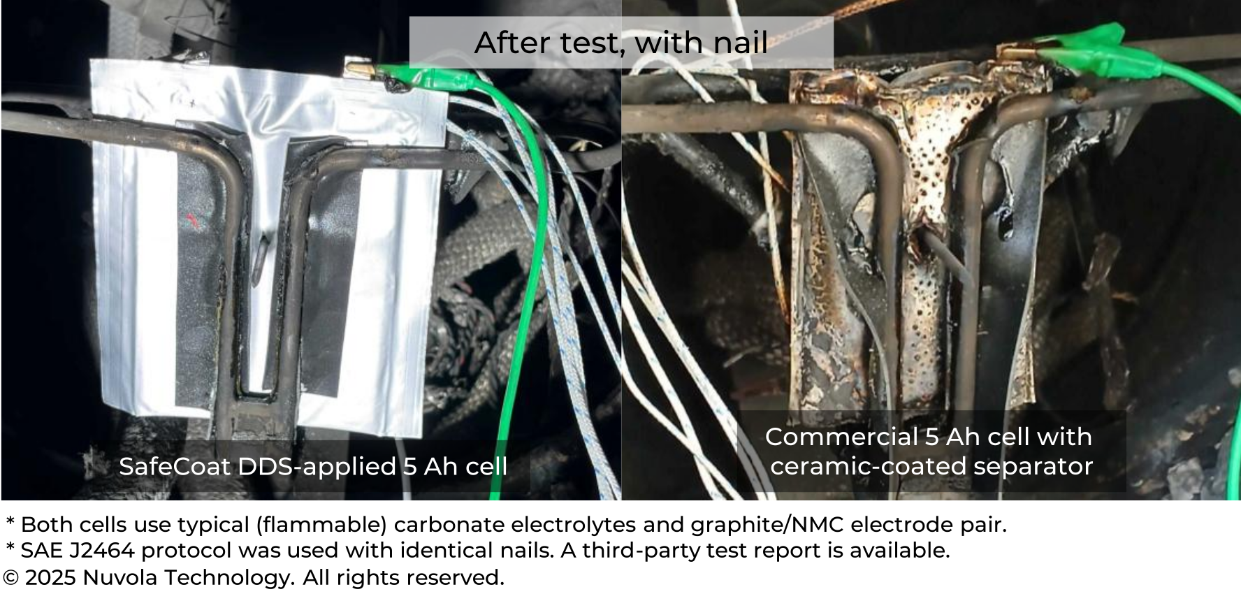 - Performance Scales to Thinner Layers: Even thinner SafeCoat layers maintain safety and functionality, enabling higher energy density. (video above)
